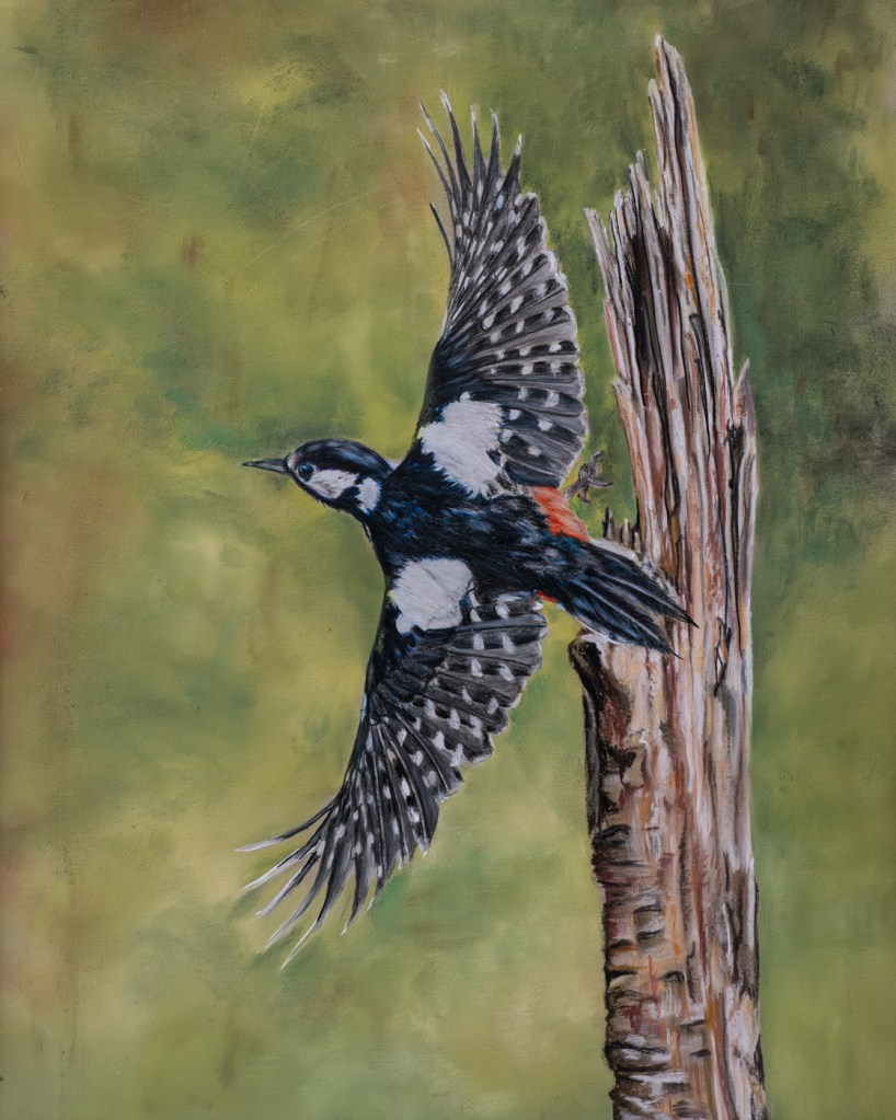 This year I have been producing work using Lightfast Colour Pencils with Pan Pastels for the backgrounds on different surfaces.