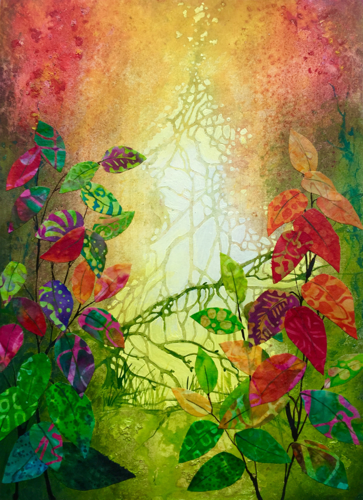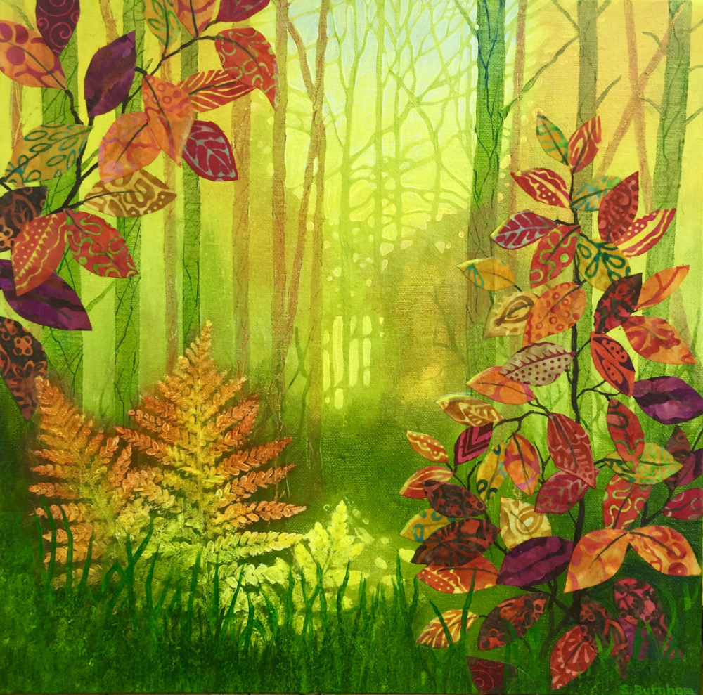I took up painting a few years ago after a long career as a Graphic Designer. I particularly enjoy painting landscapes and like to entice the viewer into to my artwork and let their imagination take over. I paint in a range of mediums but find that combining mixed media gives me the best variety of colour and texture. Recently I have added fabric to my paintings as the patterns and textures add another dimension. I get my inspiration from the landscape around me mostly painting from photos I have taken.