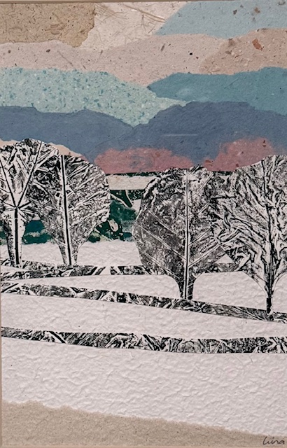 - Medium: Watercolour, acrylic, collage, handmade paper, linocut